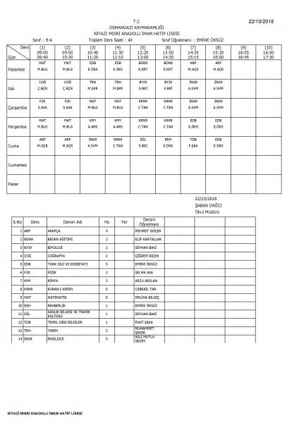 GÜNCEL DERS PROGRAMI